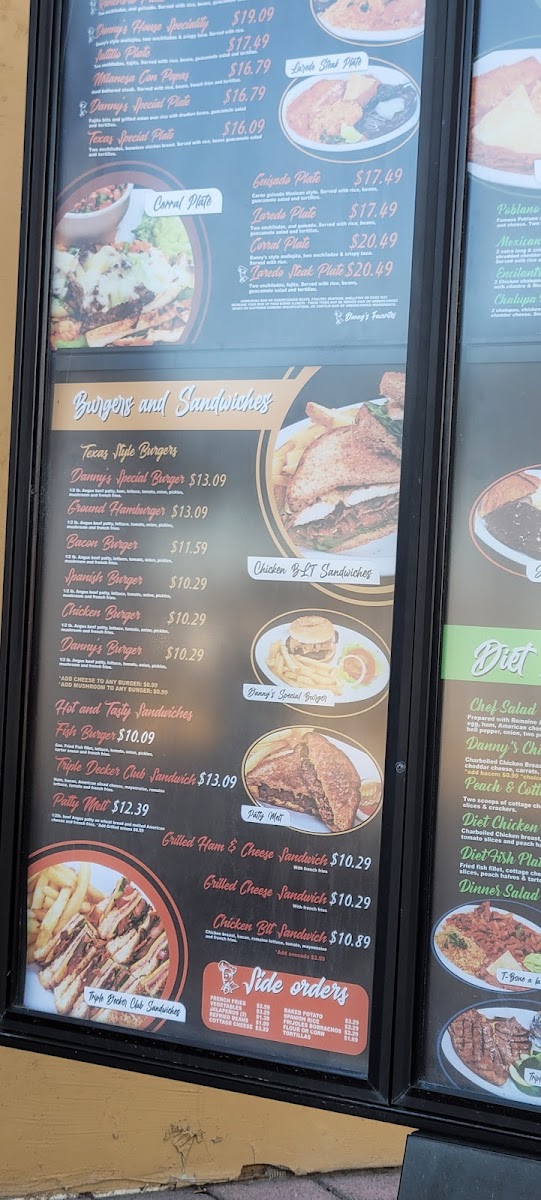 At Danny's Restaurant - Laredo, the menu offers a delightful blend of comfort food that caters to diverse palates. Located at 9720 McPherson Rd, Laredo, TX, this eatery serves up generous portions at wallet-friendly prices. Start your meal with the Grilled Ham & Cheese Sandwich paired with crispy fries, or indulge in the mouthwatering Bacon Burger boasting a juicy 1/3 lb beef patty topped with two slices of crispy bacon.